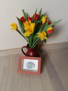 Minden tulipánt egy-egy Galga-menti hímzéssel fűszereztem. A Galga-mentén élünk, egy olyan térségben, amely az itt élő többféle nemzetiség által nagyon színes hagyományokban, szokásokban. Azonban, véleményem szerint, méltatlanul elfeledett, háttérbe szorított más térségekhez viszonyítva. Ezért is vettem a bátorságot és kicsit újragondolva a mintákat rácsempésztem egy-egy tulipánra. A tulipán mint hímzési vagy díszítési motívum nem igazán jellemző erre a vidékre. Erről tanúskodik Petrás Anna Galga-menti hímzéstervek c. gyűjteménye is, ami inspirációul szolgált a tulipánok díszítésének megalkotásánál. Viszont a tulipánokon nagyon szépen mutatnak ezek a minták, mint azt az alábbi kép is bizonyítja.