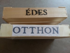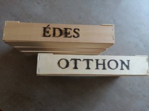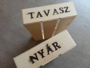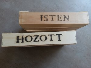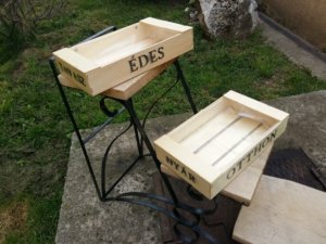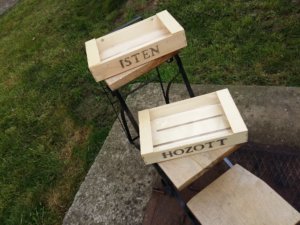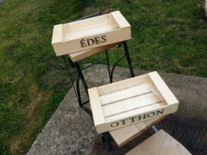 Mivel a ládákat nem festettem le, ezért a szálak futása mentén kissé elmosódott a felirat, ami szerintem még egyedibbé teszi őket.